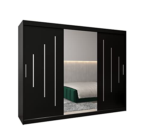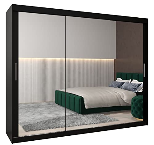 Armoire à trois portes coulissantes noir avec miroir, barres...