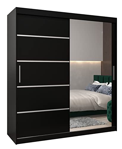 Armoire à Deux Portes Coulissante Noire, Verona 2, 180x200x6...