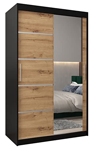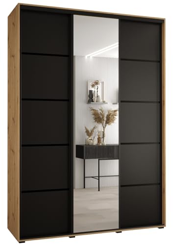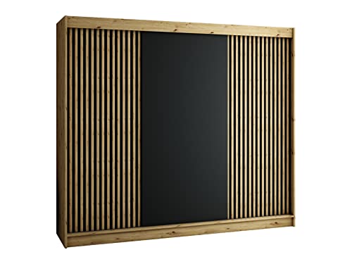 Armoire coulissante en bois chêne et noir avec 3 portes et p...