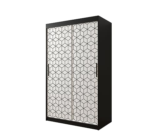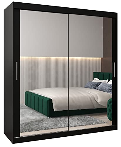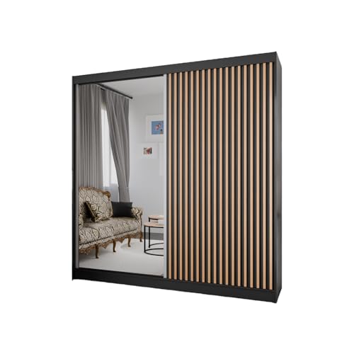 Armoire à Deux Portes Coulissante Noir Matte Moderne avec Mi...