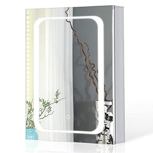 Miroir mural salle de bain LED, Armoire murale rangement ave...