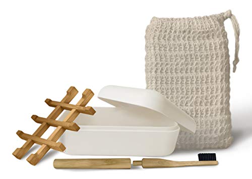 Porte-Savon Bambou EDARTO avec égouttoir et couvercle en fib...