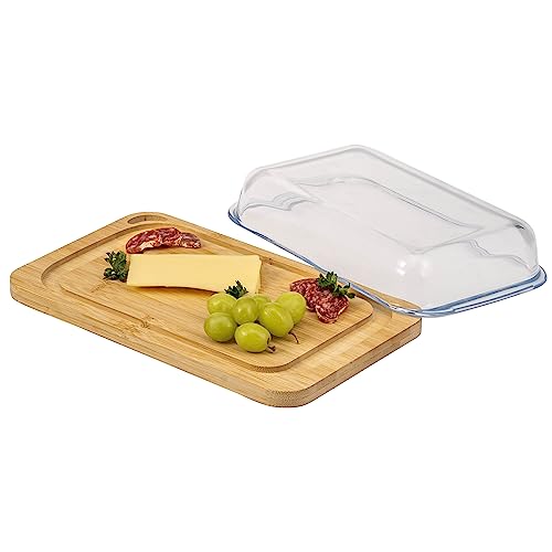Plateau à fromage bambou avec couvercle verre, boîte charcut...