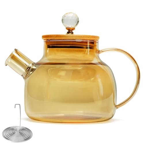 Belle Verre Theiere avec Couvercle Bambou et Filtre Borosili...