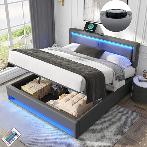 Lit Double Rembourré avec Port De Chargement USB Et étagère...