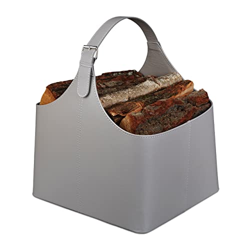 Relaxdays Panier à bois en similicuir, porte-bûches solide a...