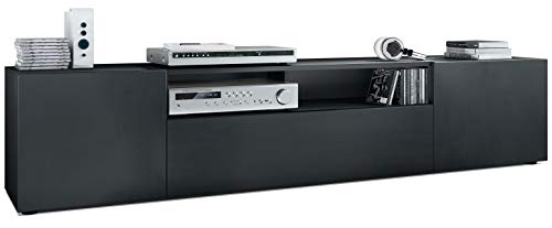 Buffet TV Mogan, 2 Portes, Noir Mat/Noir (181 x 39 x 35 cm)