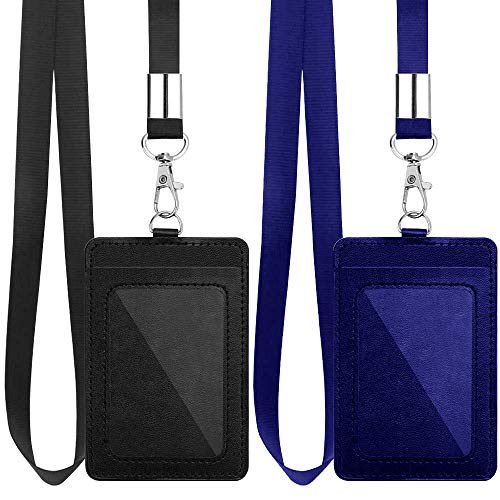 Vertical porte-badges 2 en cuir synthétique cordon nylon dét...