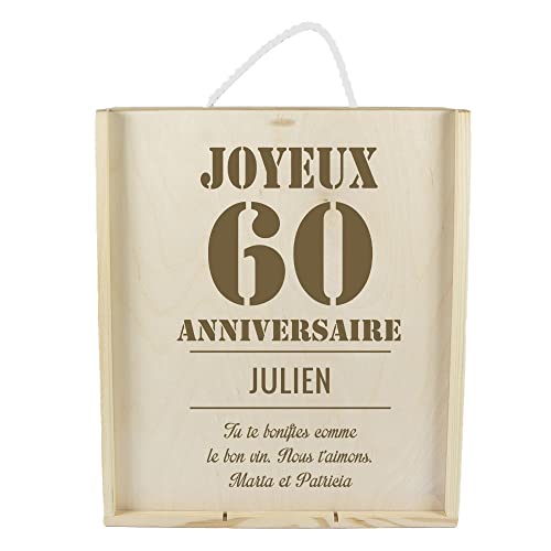 Caisse en bois pour bouteilles de vin gravée de l''âge, du n...