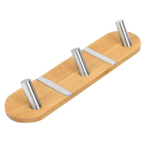 Lot de 3 crochets muraux en acier inoxydable et bambou pour...