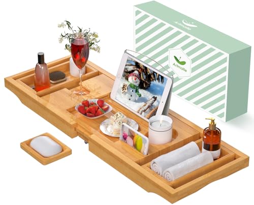 Artmalle Plateau de Baignoire Pliable en Bambou avec Support...