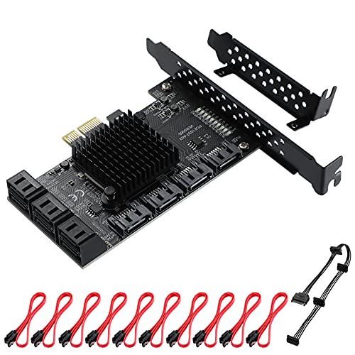 MZHOU Carte PCIe SATA 10 Ports, Carte D''extension PCI-E ver...