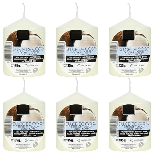 Lot 6 Bougie Parfumées Blanc, Pilier Noix de Coco 70x57mm Du...