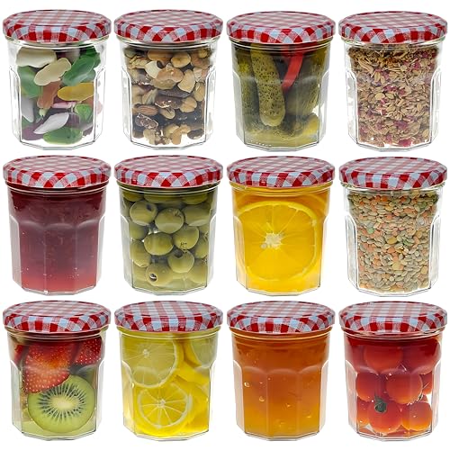 Lot de 12 pots confiture verre large goulot visser Rouge 324...