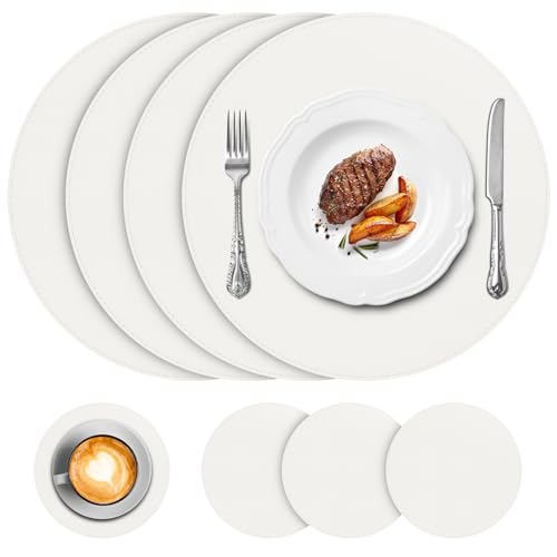 Lot de 4 Sets Table PU Cuir, Dessous Verres, Lavable, Antidé...