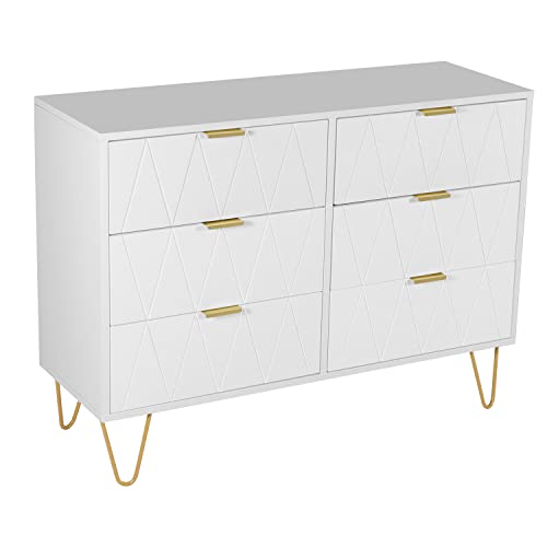 Commode blanc élégant avec 6 tiroirs, armoire de rangement c...
