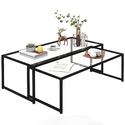 Lot de 2 Tables Basses Gigognes Design Acier Verre Noir