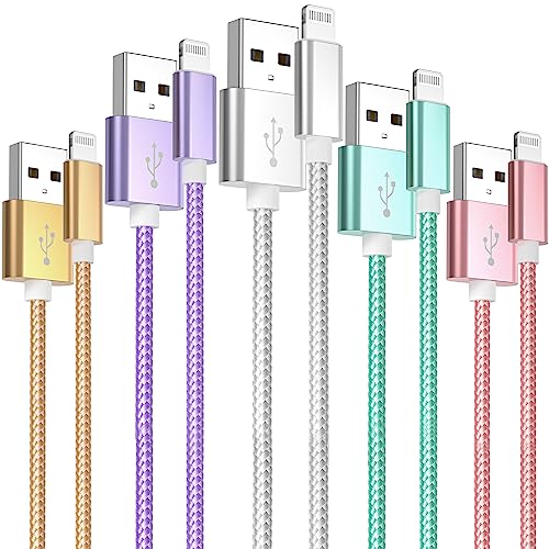 Câble iPhone Chargeur 5 Pack Ultra Résistant Colouré Nylon B...