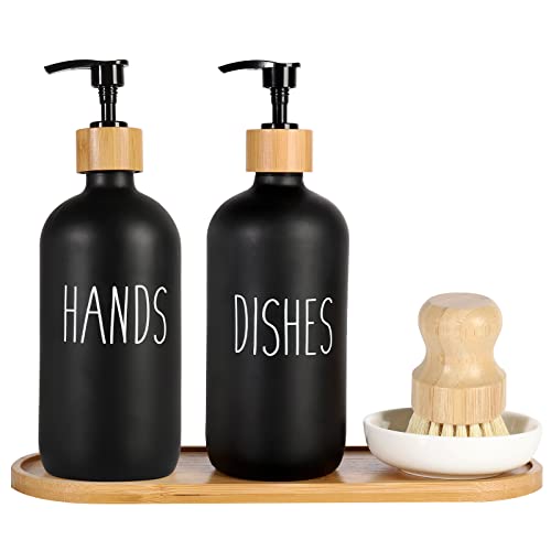 Distributeur de savon en verre avec plateau et brosse à vais...