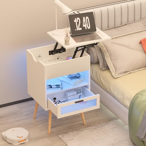 Joli Table de Chevet avec Prise USB, Comptoir Relevable, Écl...