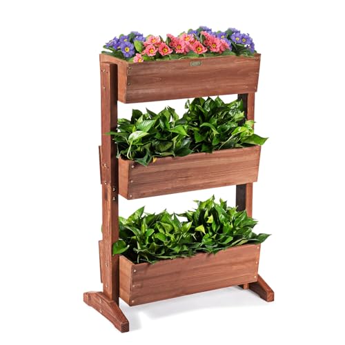 RELAX4LIFE Vertical Garden 3 Pots, Potager Urbain Bois Sapin
