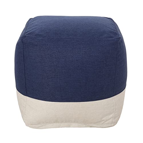 Christopher Knight Pouf Cube Bleu Marine et Beige