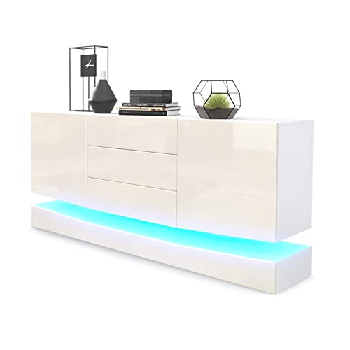 Vladon Sideboard City, Blanc Mat/crème Haute Brillance y Com...