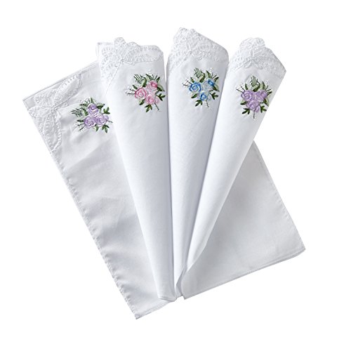 Mouchoir coton 100% pour femme, brodé Lot 6, blanc, taille u...
