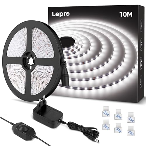 Lepro Ruban LED blanc froid 10 m - 6000 K - Intensité variab...
