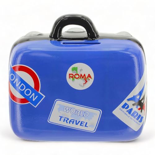 MIJOMA Tirelire en forme de valise - En faïence émaillée ble...