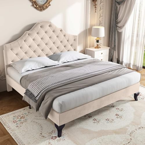 KOMHTOM Lit Rembourré avec Tête de Lit réglable en Hauteur,...