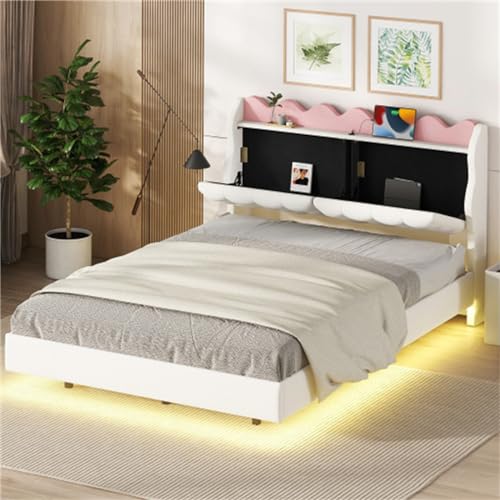Lit rembourré 140x200cm avec USB, Cadre de lit Double LED en...