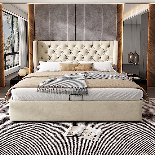 Lit 90x200cm, Cadre lit doux velours beige, Simple plat pour...