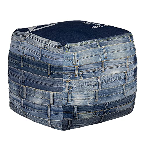 WomanDesign Cube Ottoman Pouf Carré Bleu 45cm Jeans Rembourr...