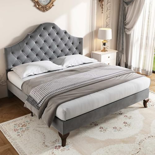 KOMHTOM Lit Double Rembourré avec Tête de Lit, Lit Coffre av...