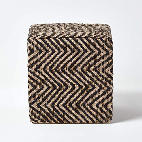 Homescapes Pouf carré jute Losange Noir/Creme 36x36x38 cm