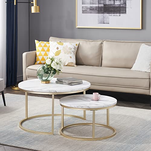 GrandCA HOME Tables Gigognes Ronde Lot de 2, avec Cadre en M...