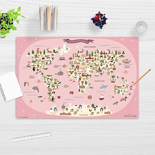 Covery World sous-main effaçable pour enfants - Carte du mon...