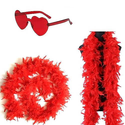 Boa Plumes Rouge 2M Plume Colorées Clapet Boas Avec Lunettes...