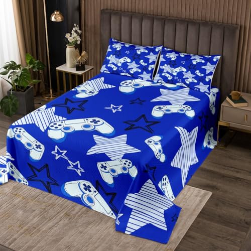 Manfei Couvre-lit bleu roi matelassé avec oreillers pour enf...