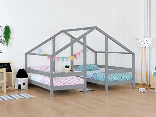 Lit cabane pour Deux Enfants VILLY - Bois Massif - Gris - 2...