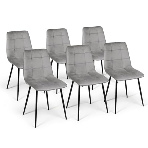 IDMarket - Lot de 6 chaises Mila Velours Gris Clair pour Sal...