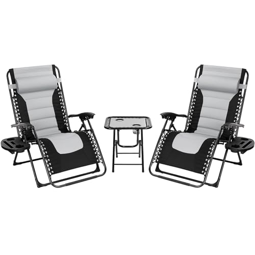 LIFERUN Lot de 3 chaises longues pliantes, avec table d''app...