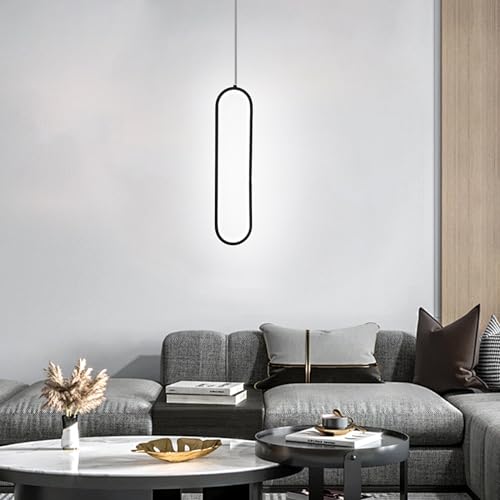 Lumière LED Suspension Minimaliste Noir Ovale, 1-Lampe pour...