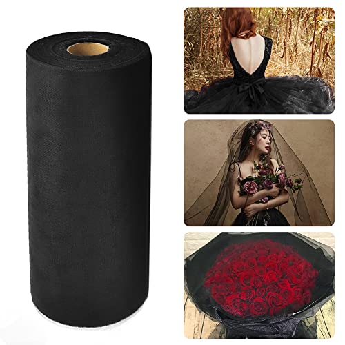 QINERSAW Rouleau de Tulle Noir en Polyester Grand Rouleau de...