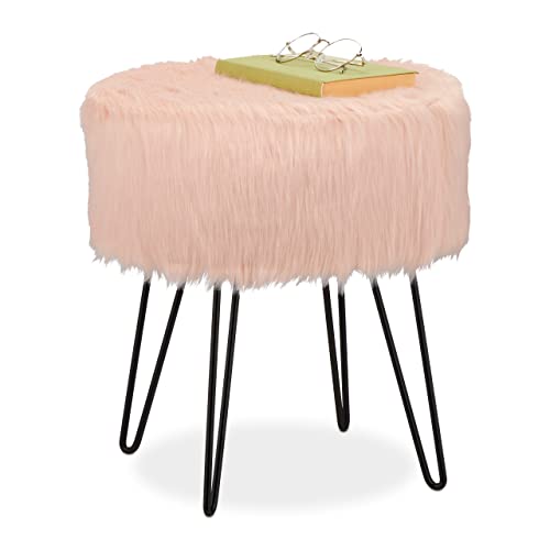 Relaxdays Tabouret Fourrure, Pouf matelassé, Longs Poils, St...