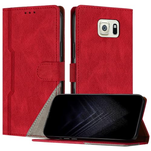 CODIO Étui Cuir pour Stand Samsung Galaxy S10e Noir/Rouge