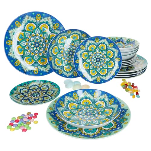 MamboCat Bayram Lot de 18 assiettes mandala bleu turquoise p...