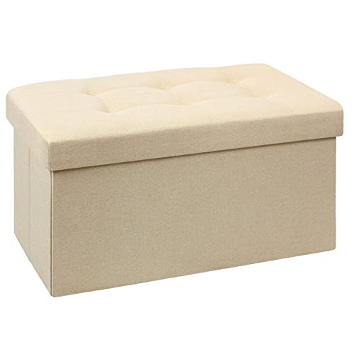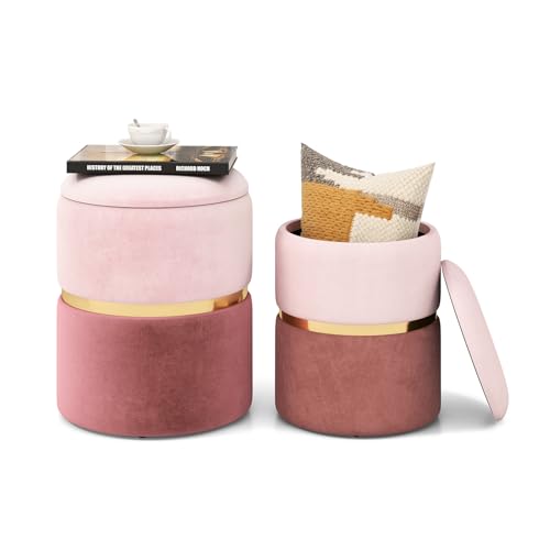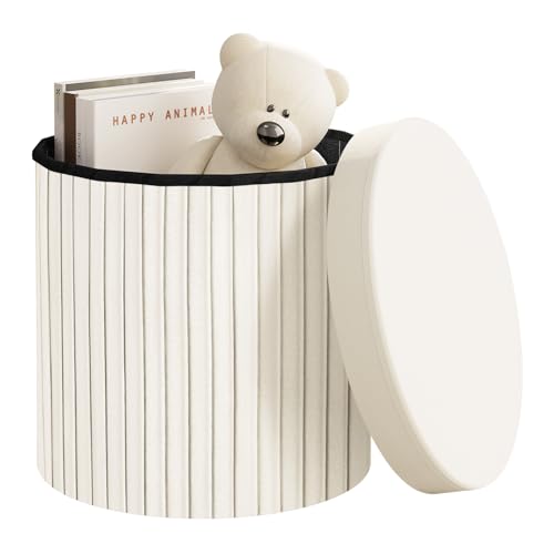 WOLTU Pouf Rond avec Rangement, Tabouret de Rangement Pliabl...