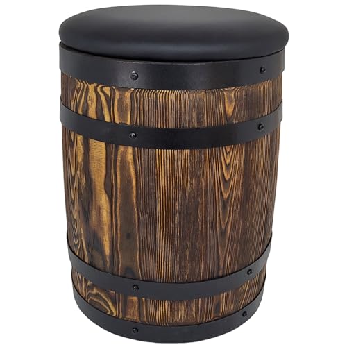 Pouf baril bois brossé 45x35 siège cuir écologique